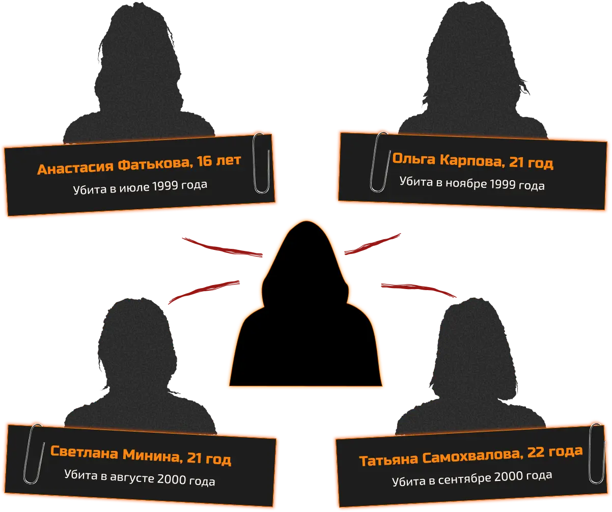 Четыре жертвы в Новосибирской области с 1999 по 2000 год и четыре в Московской области в 2002-м. Между этими делами было слишком мало улик и слишком большой временной разрыв, чтобы рассматривать их как часть единой картины — два региона, два следствия, два мира, которые даже не догадывались о связи.