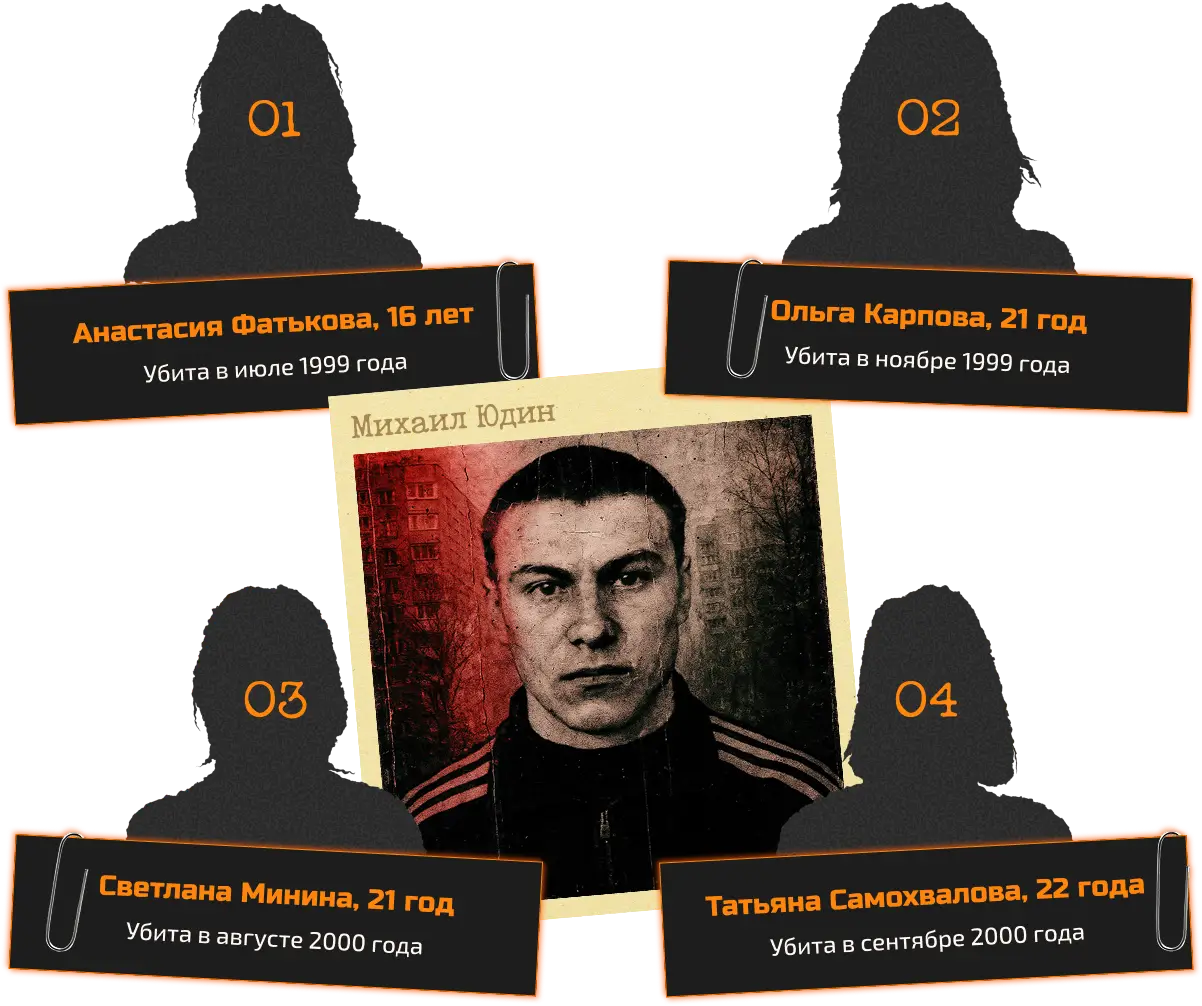На допросах он уже не пытается строить из себя ни героя, ни жертву — его голос звучит ровно. Он признал вину во всех четырёх убийствах, рассказывал обо всём: спокойно, без эмоций, отмеряя каждое слово. Первой стала абитуриентка одного из московских колледжей.